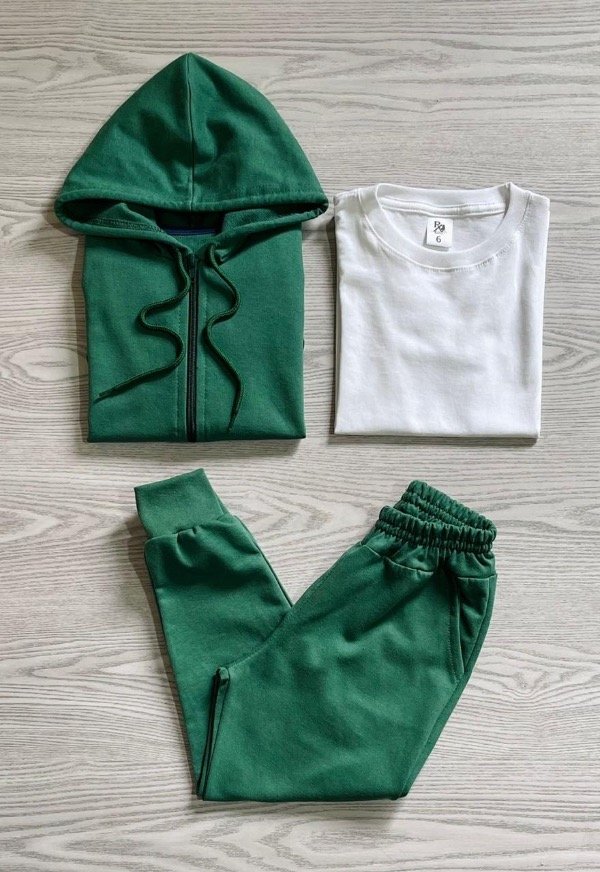 TRIO ESCOLAR VERDE (CAMPERA + REMERA + PANTALÓN)